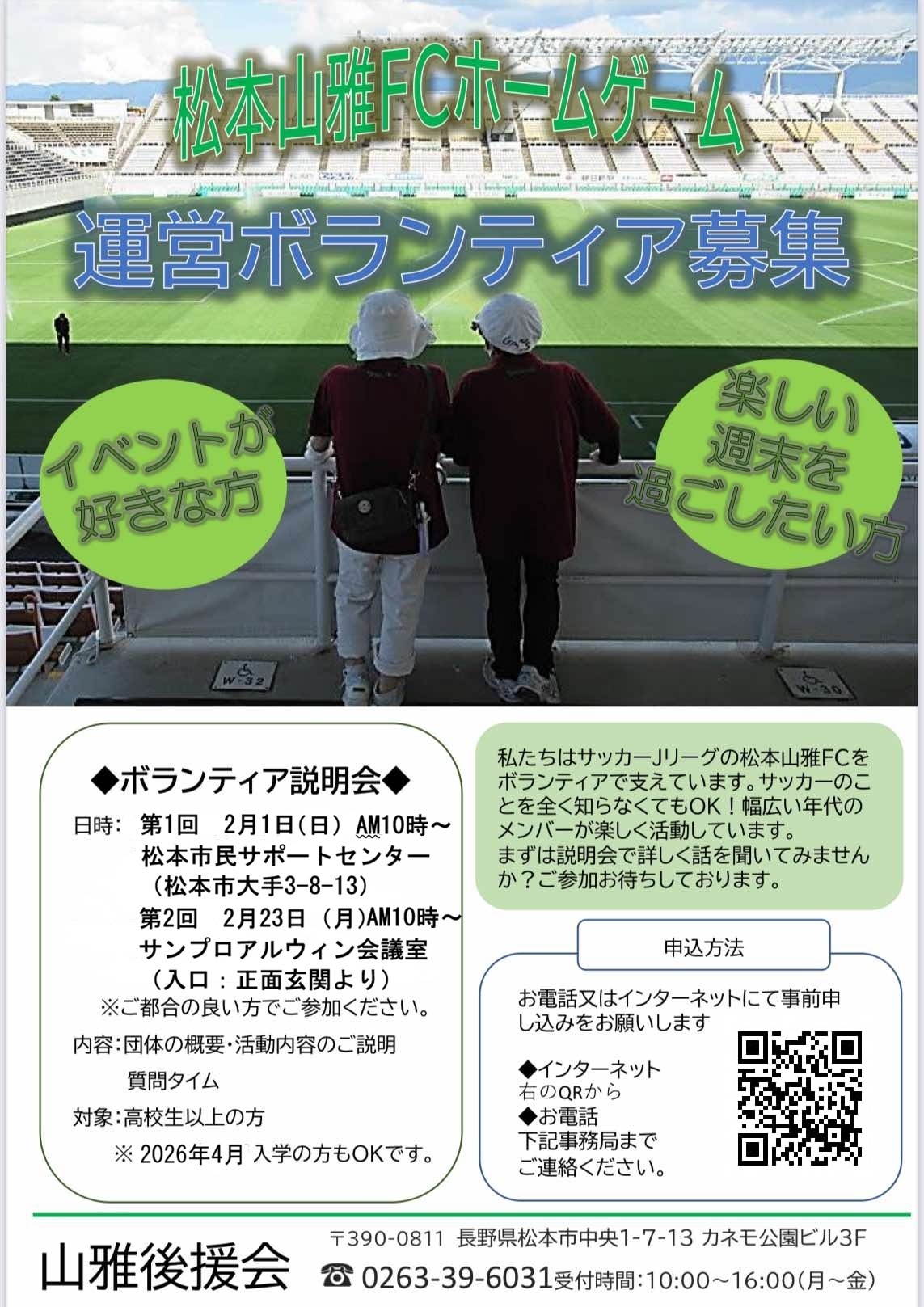 松本山雅FCの力になりたいという方はもちろん、イベントが好きな方や楽しい週末を過ごしたい方のご応募もお待ちしています!