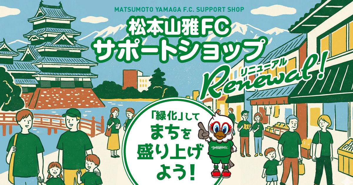 「松本山雅FCサポートショップ」は、松本山雅FCと一緒に地域全体を盛り上げるプロジェクトです。お店はサポーターやお客さん向けに、自由に「特典クーポン」を発行することができます。お店は飲食店に限らず、小売店やサービス業など、様々な業態の皆様にご加入いただけます。試合日の賑わい創出や観光・産業振興等に取り組み、地域に愛されるスポーツクラブを目指します。
